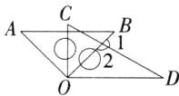 13.(2024山东滨州中考,12,)一副三角尺如图1摆放,把三角尺AOB绕公共顶点O顺时针旋转至图2,即AB//OD时,∠1的大小为________°。