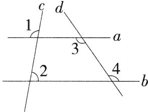 1.(2024甘肃陇南武都二模)如图,直线a、b被直线c、d所截,若∠1 = 100°,∠2 = 80°,∠3 = 125°,则∠4的度数是(M7207006)