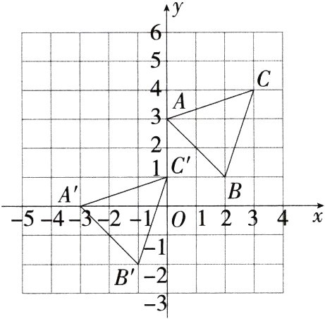 (1)由题图知,B(2,1),B'(-1,-2),三角形A'B'C'是由三角形ABC向左平移3个单位,向下平移3个单位得到的.