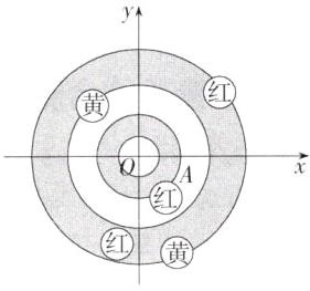 2. (冰壶)(2022北京海淀期末)冰壶是在冰上进行的一种投掷性竞赛项目,被喻为冰上的 “国际象棋”。如图所示的是红、黄两队某局比赛投壶结束后冰壶大本营内冰壶的分布图,以冰壶大本营内的中心点为原点建立平面直角坐标系,按照规则,冰壶更靠近原点的队为本局胜方,则胜方最靠近原点的冰壶所在位置位于 ( )