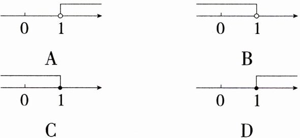 12.(2024云南昭通三模,7,★★☆)若$\frac{\sqrt{x - 1}}{x - 1}$有意义,则实数$x$的取值范围在数轴上表示正确的是 ( )