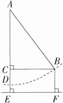 8.(2023河北唐山期中)有一架秋千,当它静止时,踏板离地面的垂直高度DE = 0.5 m,将它往前推送2 m(水平距离BC = 2 m)时,秋千踏板离地面的垂直高度BF = 1.5 m,秋千的绳索始终拉得很直.
