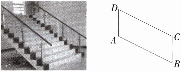 9.如图所示的是某中学教学楼楼梯侧面图,楼梯扶手下的玻璃为平行四边形.小友课间用量角器量得∠D = 60°,已知AB = 2.5 m,BC = 1.2 m,则这块玻璃的面积为________ m².