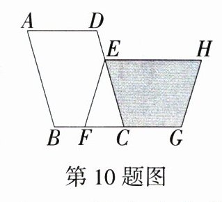 10.(2024台湾省中考,18,★★☆)如图,平行四边形ABCD与平行四边形EFGH全等,且A、B、C、D的对应顶点分别是H、E、F、G,其中E在DC上,F在BC上,C在FG上.若AB = 7,AD = 5,FC = 3,则四边形ECGH的周长为(M8218001) ( )
