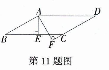 11.(2024河南南阳期末改编,7,★★☆)如图,在□ABCD中,AE⊥BC于点E,AF⊥CD交DC的延长线于点F.若AE = 2,AF = 3,且□ABCD的周长为20,则□ABCD的面积为 ( )