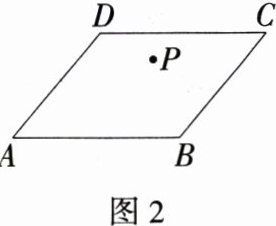 (3)张大爷家有一块平行四边形菜园,园中有一口水井P,如图2,张大爷计划把菜园平均分成两块,分别种植西红柿和茄子,且使两块地共用这口水井,请你帮助张大爷把地分开.