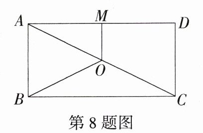 8. 如图,点O是矩形ABCD的对角线AC的中点,OM//AB交AD于点M,若OM = 3,BC = 10,则OB的长为(M8218005) ( )
