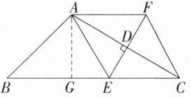 - (1)证明:因为点D是AC的中点,所以AD = CD,因为AF//BC,所以∠FAD = ∠ECD,∠AFD = ∠CED,所以△AFD≌△CED(AAS),所以AF = CE,所以四边形AECF是平行四边形,因为EF⊥AC,所以四边形AECF是菱形。\n(2)如图,过点A作AG⊥BC于点G,由(1)知四边形AECF是菱形,所以AE = CF = 2,∠FAE = 2∠FAC = 60°,因为AF//BC,所以∠AEG = ∠FAE = 60°,因为AG⊥BC,所以∠AGB = ∠AGE = 90°,所以∠GAE = 30°,所以GE = $\frac{1}{2}$AE = 1,所以AG = $\sqrt{AE^{2}-GE^{2}}$ = $\sqrt{3}$,因为∠B = 45°,所以∠GAB = 45° = ∠B,所以BG = AG = $\sqrt{3}$,所以AB = $\sqrt{BG^{2}+AG^{2}}$ = $\sqrt{6}$。