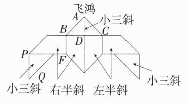 答案:2 + √2 解析:如图,连接AD,因为题图①中大正方形的边长为4,所以EG = 4,因为I、J分别为EK、GK的中点,所以IJ = 1/2EG = 2,所以BC = IJ = 2,在等腰Rt△IJK中,由勾股定理得IK = √2,所以AB = AC = √2,因为∠BAC = 90°,所以S△ABC = √2×√2×1/2 = 1,因为BC = 2,所以AD = 1,所以BF = BD = AD = 1,因为PQ = AB = √2,所以“飞鸿”的高度为AD + BF + PQ = 1 + 1 + √2 = 2 + √2。