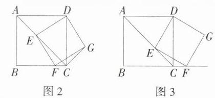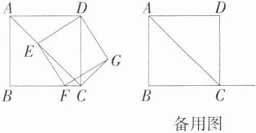 (2)因为四边形ABCD是正方形,AB = 3,所以AD = CD = AB = 3,∠ADC = 90°,所以AC = √(AD² + CD²) = 3√2,因为CE = 2√2,所以AE = √2,因为四边形DEFG是正方形,所以DE = DG,∠EDG = 90° = ∠ADC,所以∠ADE = ∠CDG,所以△ADE≌△CDG(SAS),所以CG = AE = √2。