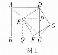 解析: (1)证明:如图1,过E作EP⊥CD于P,EQ⊥BC于Q,因为四边形ABCD是正方形,所以∠DCA = ∠BCA = 45°,所以EQ = EP,因为∠QEF + ∠PEF = 90°,∠PED + ∠PEF = 90°,所以∠QEF = ∠PED,在△EQF和△EPD中,{∠QEF = ∠PED,EQ = EP,∠EQF = ∠EPD},所以△EQF≌△EPD(ASA),所以EF = ED,所以矩形DEFG是正方形。