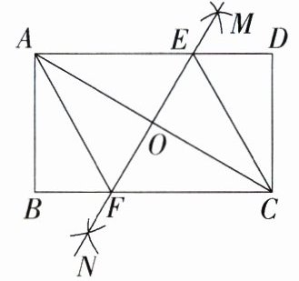 10.新考向·尺规作图(2023山东日照一模)如图,在矩形ABCD中,AB < BC,连接AC,分别以点A,C为圆心,大于$\frac{1}{2}$AC长为半径画弧,两弧交于点M,N,直线MN分别交AD,BC,AC于点E,F,O,连接CE,AF.下列结论:①四边形AECF是菱形;②∠AFB = 2∠ACB;③AC·EF = CF·CD;④若AF平分∠BAC,则CF = $\sqrt{3}$AB.其中正确结论的个数是 ( )