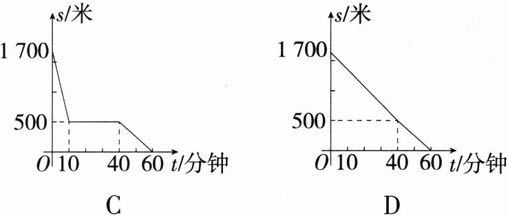 3.笑笑一家到达植物园后从游客中心出发去观景台游玩的行程如图所示,他们离游客中心的路程为s(米),所经过的时间为t(分钟).下列选项中的图象能近似刻画s与t之间的关系的是 ( )