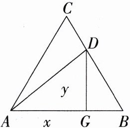 4.如图,等边△ABC的边长为1,点D从点A出发,沿A→C→B的路径运动,过D作AB边的垂线,交AB于G,连接AD,设线段AG的长度为x,Rt△AGD的面积为y,则y与x的函数表达式为______________.