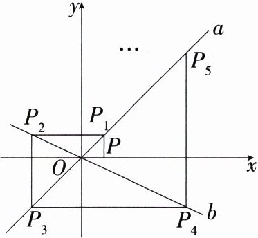 20.推理能力 如图,已知直线$a:y = x$,直线$b:y=-\frac{1}{2}x$和点$P(1,0)$,过点P作y轴的平行线交直线a于点$P_{1}$,过点$P_{1}$作x轴的平行线交直线b于点$P_{2}$,过点$P_{2}$作y轴的平行线交直线a于点$P_{3}$,过点$P_{3}$作x轴的平行线交直线b于点$P_{4}$,……,按此作法进行下去,点$P_{2024}$的横坐标为_______.