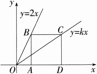 19.(2023山东潍坊期末,20,★★☆)如图,已知四边形ABCD是正方形,点B,C分别在直线$y = 2x$和$y = kx$上,点A,D是x轴上两点.