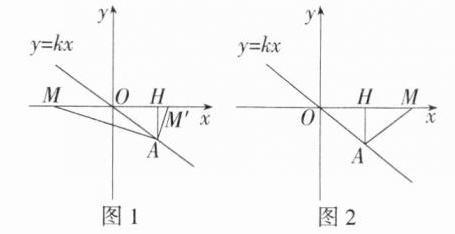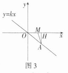 21.几何直观 已知正比例函数$y = kx$的图象经过点A,点A在第四象限内,过点A作$AH\perp x$轴,垂足为点H,点A的横坐标为3,且$\triangle AOH$的面积为3.