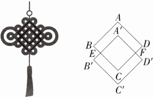 6.如图,中国结内包含两个全等的正方形,若两个大正方形的面积均为$98\mathrm{cm}^2$,重叠部分的小正方形面积为$72\mathrm{cm}^2$,则$BE$的长为________cm.