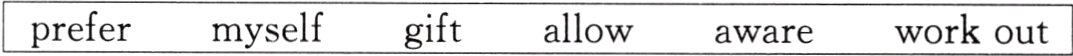 41. gift 42. myself 43. work out 44. allow 45. aware