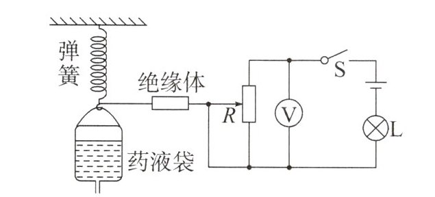 6.为了减少医护人员与病人的接触,科研人员设计了如图所示的输液提示器,让护士在护士站就能观察到药液量的变化。当药液袋中药液量减少时 ( )