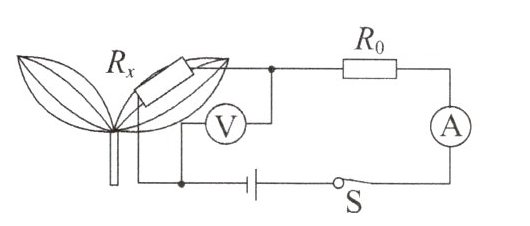 7.(2024·黑龙江佳木斯一模)湿敏电阻,当其周围空气中的水蒸气含量减少时,它的电阻值也会变小,将它放在植物叶片附近,可检测植物是否缺水,将这种湿敏电阻 $R_x$ 附着在叶片上并接入如图所示电路中,$R_0$ 为定值电阻,电源电压恒定。若植物含水量升高,则电压表的示数_______,电流表的示数_______,电路的总功率_______。(均选填“增大”“减小”或“不变”)