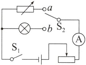 (1) 闭合开关 $S_1$,开关 $S_2$ 连接触点 b,移动滑动变阻器的滑片,使电流表的示数为______。