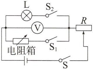 (2) 闭合开关_______,仅调节电阻箱,使电压表的示数仍为 $U_{额}$,此时电阻箱接入电路的阻值为 $R_0$。