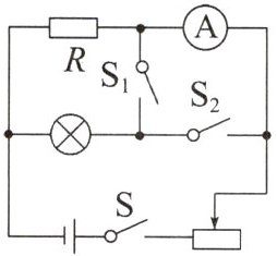 (1) 只闭合开关 S 和______,调节滑动变阻器的滑片,使电流表的示数 $I_1=$_______ A;