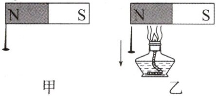 6.(2023·黑龙江牡丹江中考)如图甲所示,将小铁钉靠近磁体N极,小铁钉被吸引获得_______性。此时,小铁钉相当于一个_______,钉尖是_____极。如图乙所示,给磁体加热一段时间后,小铁钉会掉落,表明磁体的磁性可能与_______有关。