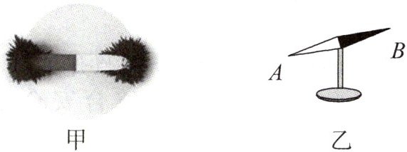 2.(教材素材变式)用条形磁体接触铁屑后,发现它的两端吸引铁屑最多,如图甲所示。条形磁体上吸引铁屑最多的两个部位叫_______,若图甲条形磁体从中间断开,则每部分有_______(选填“一个”或“两个”)磁极。如图乙所示,把一个能自由旋转的小磁针放在水平桌面上,静止时指南的A端叫_______极,用字母____表 示;指北的B端叫_______极,用字母____表示。