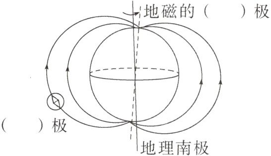 8.(教材图片变式)地磁场的示意图如图所示,请在括号内填上地磁的磁极和小磁针右下端的磁极(选填“N”或“S”)。