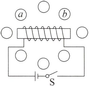 B.闭合开关S,放置在a、b处的小磁针静止时N极指向相同