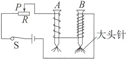 4.(科学探究)在“探究影响电磁铁磁性强弱的因素”实验中,小明同学用相同的漆包线和铁钉绕制成电磁铁A和B,并设计了如图所示的电路。