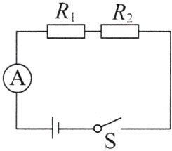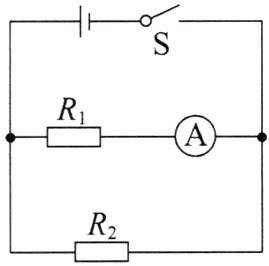 9. 如图所示的电路中,电源电压为6 V,电阻$R_{1}=10\ \Omega$,$R_{2}=30\ \Omega$。当开关S闭合时,求: