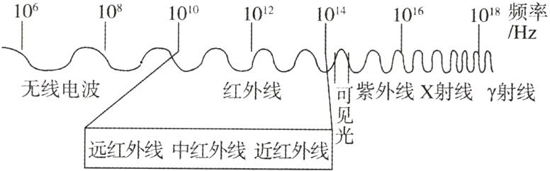 7.下图是电磁波谱,真空中各种电磁波的传播速度相同。其中红外线又可分为三部分,即近红外线、中红外线、远红外线。根据所给信息可推测 ( )
