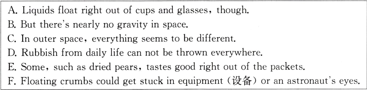 3. _______ So astronauts drink everything from a small bag with a straw (吸管) that can be closed.