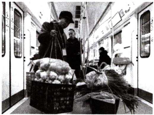 Every morning around 6 o’clock, the Shichuan Town Station is full of farmers. They carry baskets filled with fresh vegetables on their backs, or use shoulder poles(扁担)to carry the baskets. The station used to open at 6:15 a.m. To help the farmers, now it opens ten minutes earlier every day.