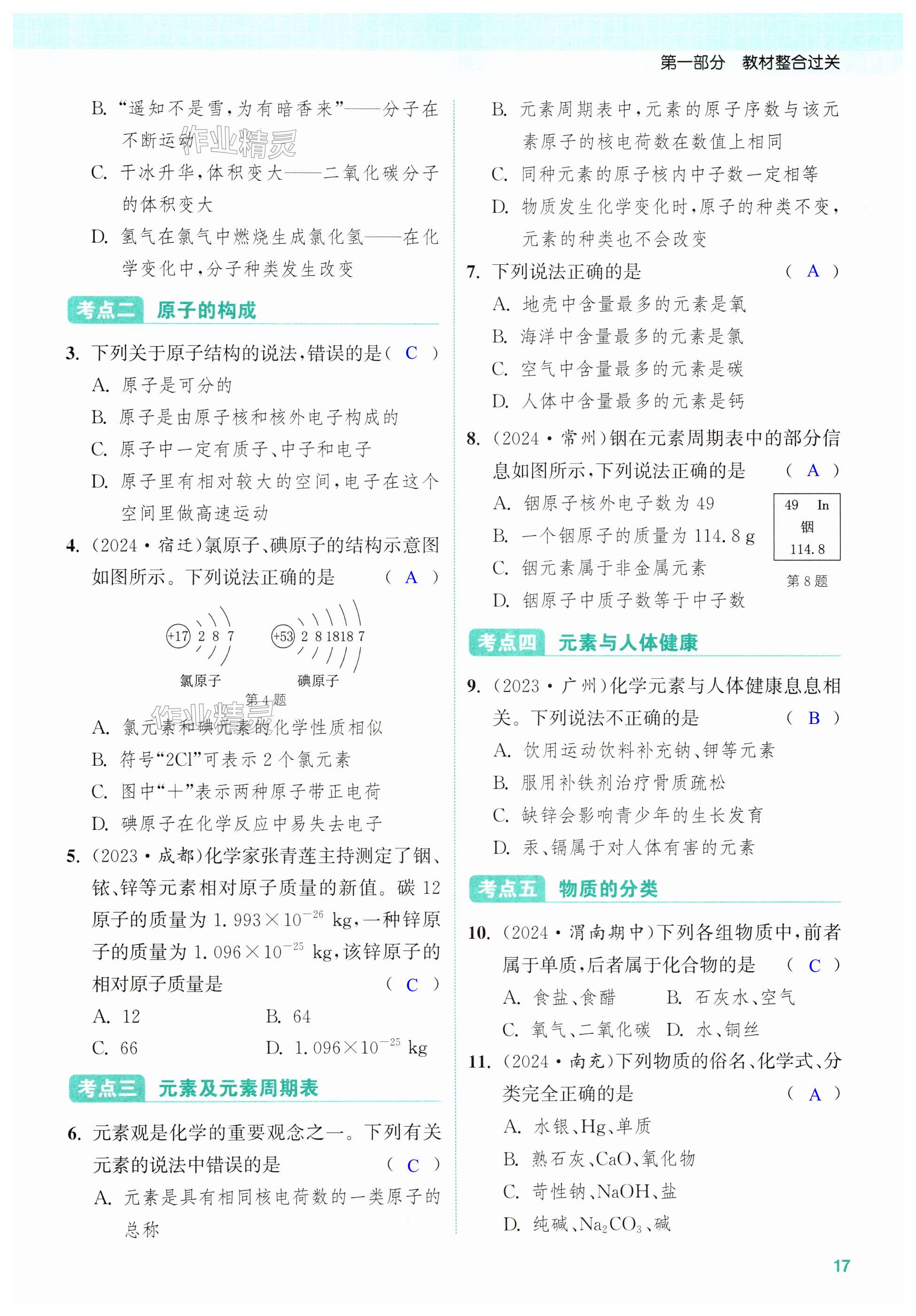 注:目前有些书本章节名称可能整理的还不是很完善,但都是按照顺序排列的,请同学们按照顺序仔细查找。练习册 2025年通城1典中考复习方略化学沪教版江苏专版 答案主要是用来给同学们做完题方便对答案用的,请勿直接抄袭。