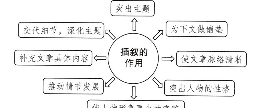 插叙的三个故事,交代老人一家与这棵枣树的不解之缘以及枣儿对于老人的特殊意义;这是老人一生中最深刻的记忆,表现了老人对过往岁月的留恋,流露出他内心的酸楚与失落感;这几个故事也丰富了文章内容,增加了戏剧的厚重感。