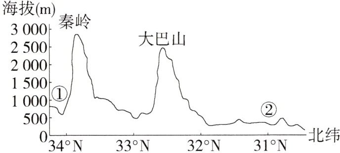 读我国部分地区沿106.5°E经线的地形剖面图,完成4—5题。