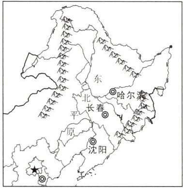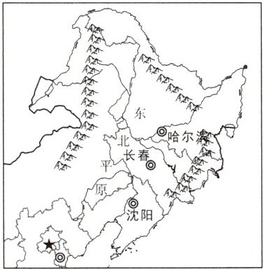 新情境·研学日记 今年1月东北旅游城市成为热门目的地,“南方小土豆”是对勇闯东北的南方游客的爱称。读东北地区示意图,完成6—7题。