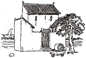 半边房是陕西关中地区的特色传统民居之一。半边房一般房顶坡度较大,后墙无窗,当地对半边房有“有钱住北房,背风又朝阳”“挡风避雨又御寒,肥水不流外人田”的描述。读半边房素描图,回答9—10题。