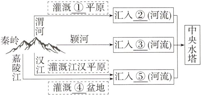 (3)和合南北,泽被天下。秦岭地区生态价值巨大,水资源丰富,储量高达220多亿立方米,被称为“中央水塔”。据此完成下列框图。