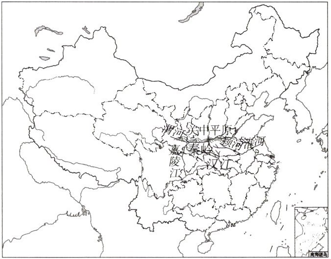 暖温带@@水量小@@湿润区@@亚热带常绿阔叶林@@例:冬季,阻挡冬季风南下,使得南北方温差加大。@@关中@@黄河@@淮河@@四川@@长江