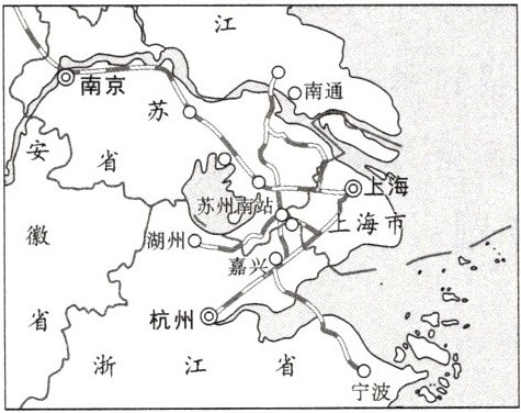 (3)高铁苏州南站所处的吴江地区地势低平,____________(选填“水网密布/草原广布/千沟万壑/连绵起伏”),在苏州的农业布局上吴江是重要的____________(选填“特色蔬菜基地/花卉苗木基地/畜牧业基地/优质稻米基地”),为减少占用耕地,高速铁路部分路段采用高架桥设计。
