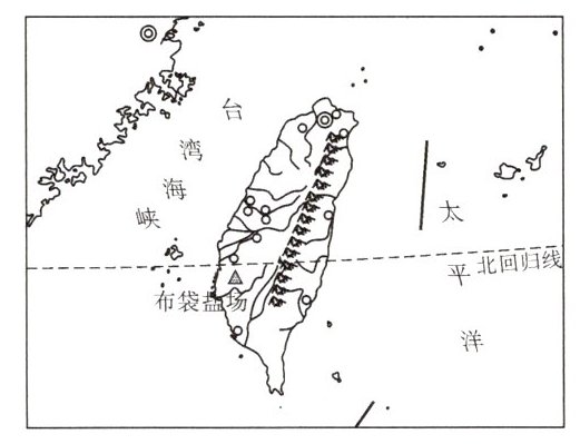 10.(2024安徽蚌埠期中,20,★☆☆)台湾岛有“东南盐仓”之称,布袋盐场位于台湾岛西部。据图分析,布袋盐场利于晒盐的条件有 ( )
