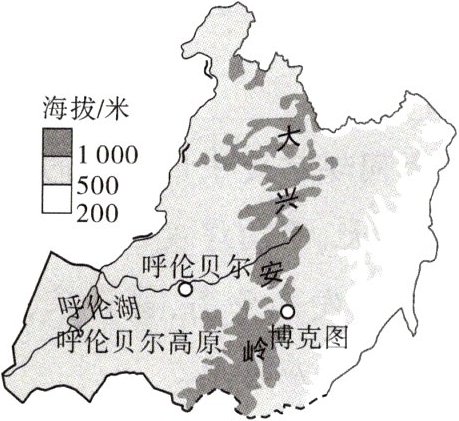 区域认知 读呼伦贝尔市地图,完成1—2题。