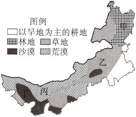 新特色·常考地图 内蒙古是我国四大牧区之一。读内蒙古自治区土地利用类型分布图,完成5—7题。