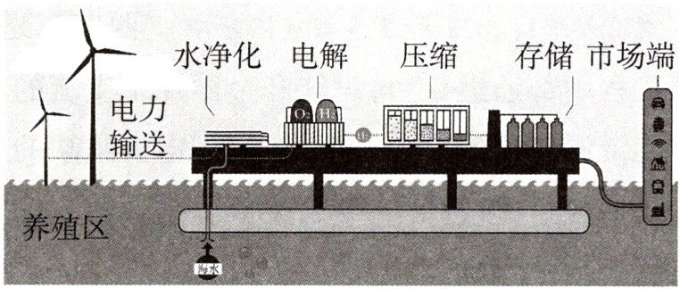 人地协调观 “十四五”期间,广东省加速推进“海上风电+海洋牧场+海水制氢”融合项目开发,开创了“海上粮仓+蓝色能源”的新局面,为我国能源发展探索出海域资源集约生态化开发的新模式。氢能为清洁能源,其热值约是原油的3.3倍,煤的4.7倍。读“海上风电+海洋牧场+海水制氢”融合开发示意图,完成 6—8题。