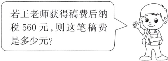 (3) 稿费为4000元或高于4000元,稿费的80%需缴纳14%的个人所得税。